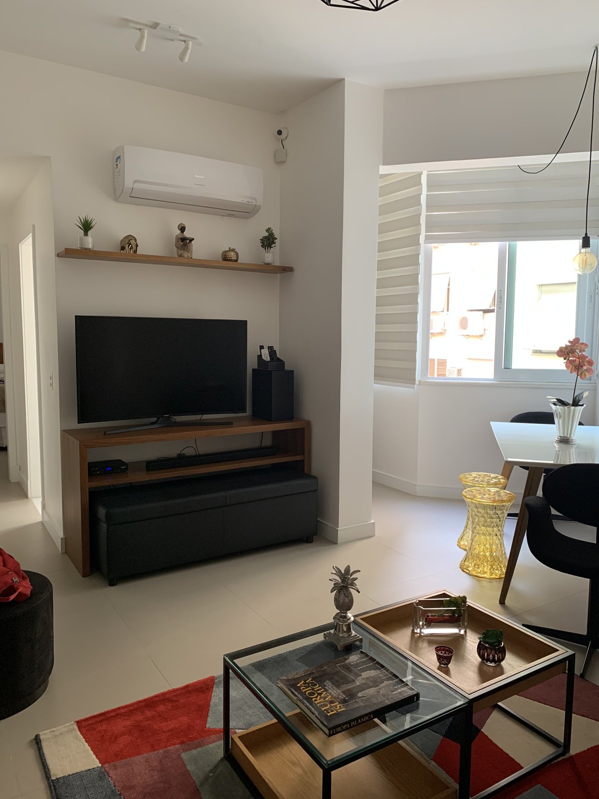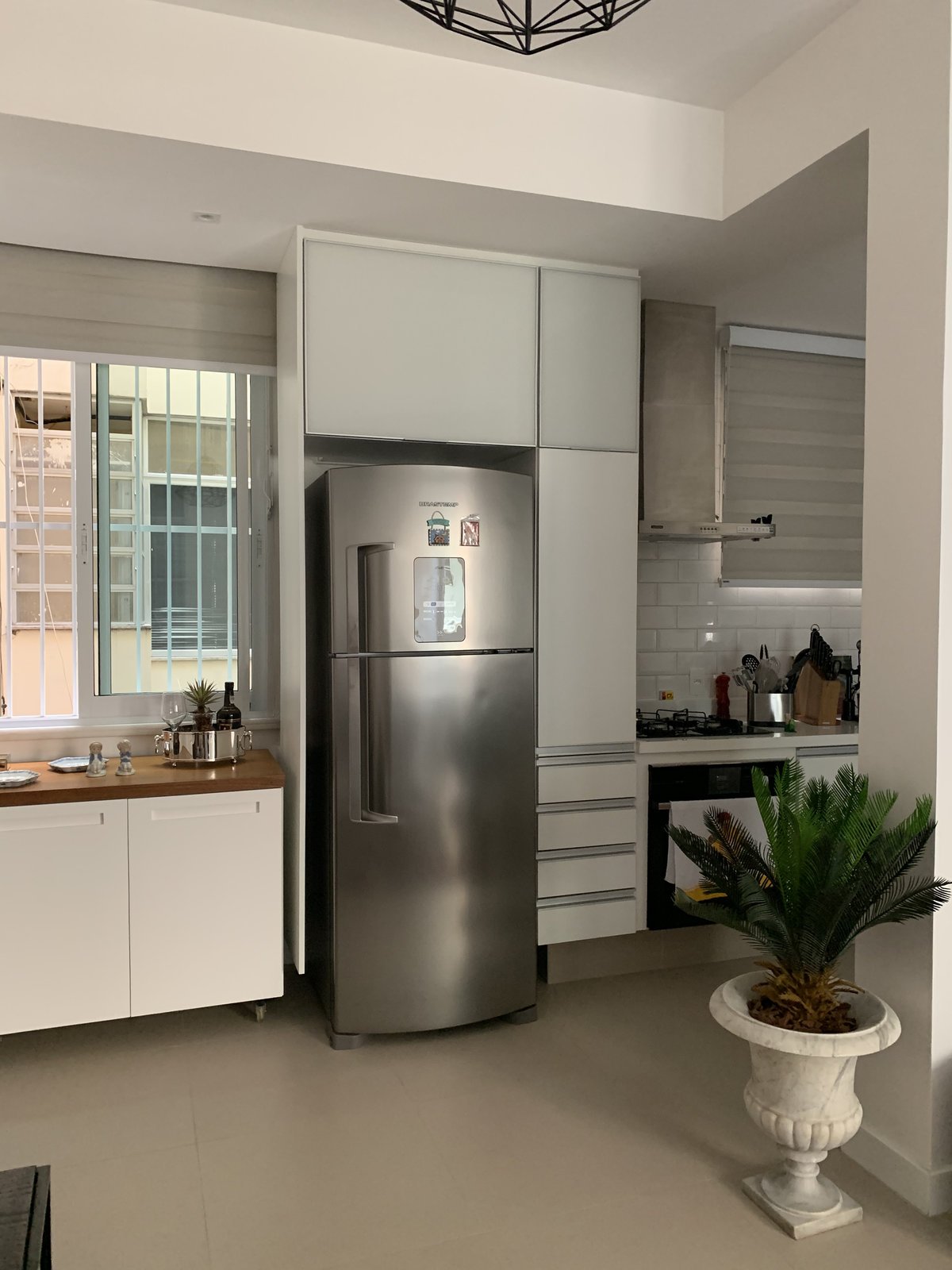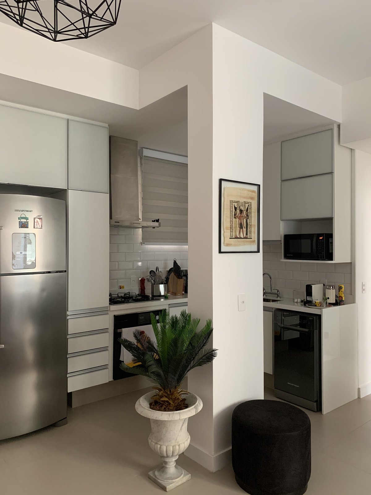 Neste apartamento em Copacabana, o coração da casa ganhou vida com a cozinha totalmente aberta para a sala. Além de funcional e equipada, ela trouxe claridade e ventilação natural que se espalham por todo o apartamento. O resultado é uma atmosfera leve, iluminada e acolhedora.